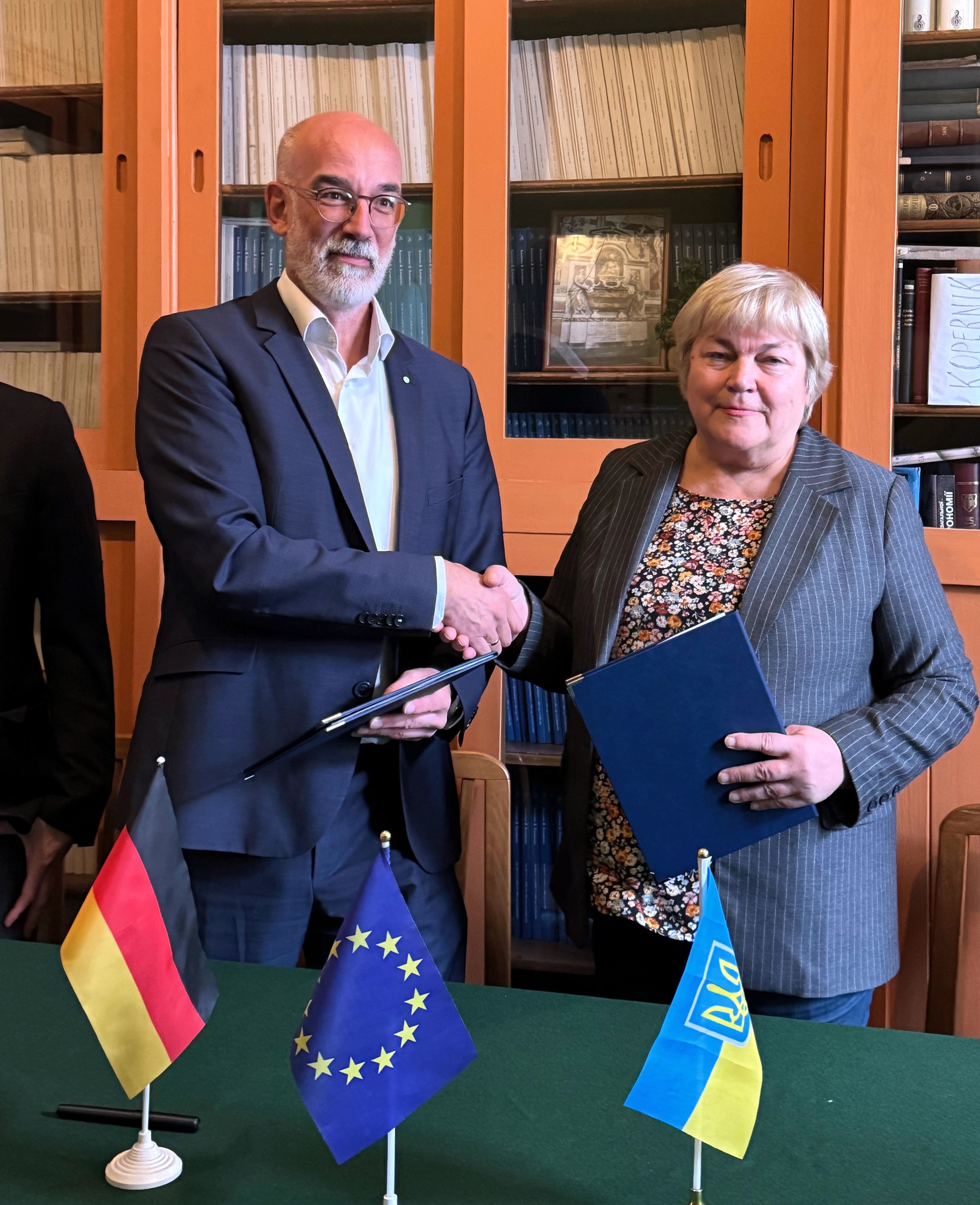 Christian Stegmann und Iryna Vavilova nach der Unterzeichnung der Absichtserklärung in Lviv. Foto: Valeriia Pinchuk