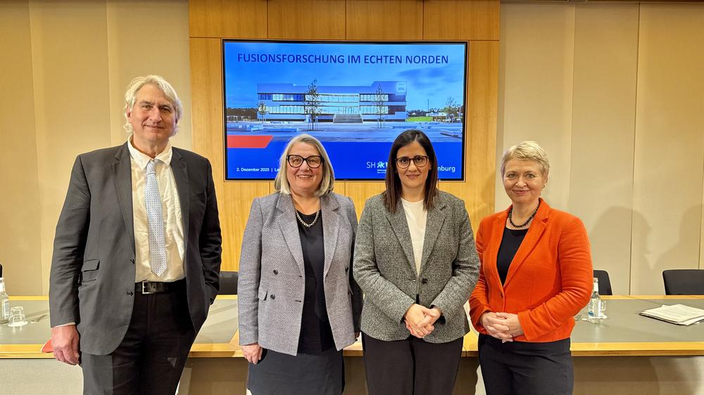 Im Rahmen einer Landespressekonferenz am 2. Dezember im Hamburger Rathaus stellten Maryam Blumenthal, Senatorin für Wissenschaft, Forschung und Gleichstellung in Hamburg und Dorit Stenke, Ministerin für Allgemeine und Berufliche Bildung, Wissenschaft, Forschung und Kultur des Landes Schleswig-Holstein die Fusionsallianz der Länder Hamburg, Schleswig-Holstein, Bayern, Hessen, Mecklenburg-Vorpommern und Sachsen sowie die Bestrebungen zum Thema Fusionsforschung aus norddeutscher Perspektive vor. Als Vertreterinnen und Vertreterinnen und Vertreter der Wissenschaft gaben Beate Heinemann, Vorsitzende des DESY-Direktoriums und Thomas Feurer, Vorsitzender der Geschäftsführung des European XFEL einen Einblick in die beiden Großforschungsinfrastrukturen in Schenefeld und der Science City Hamburg Bahrenfeld.