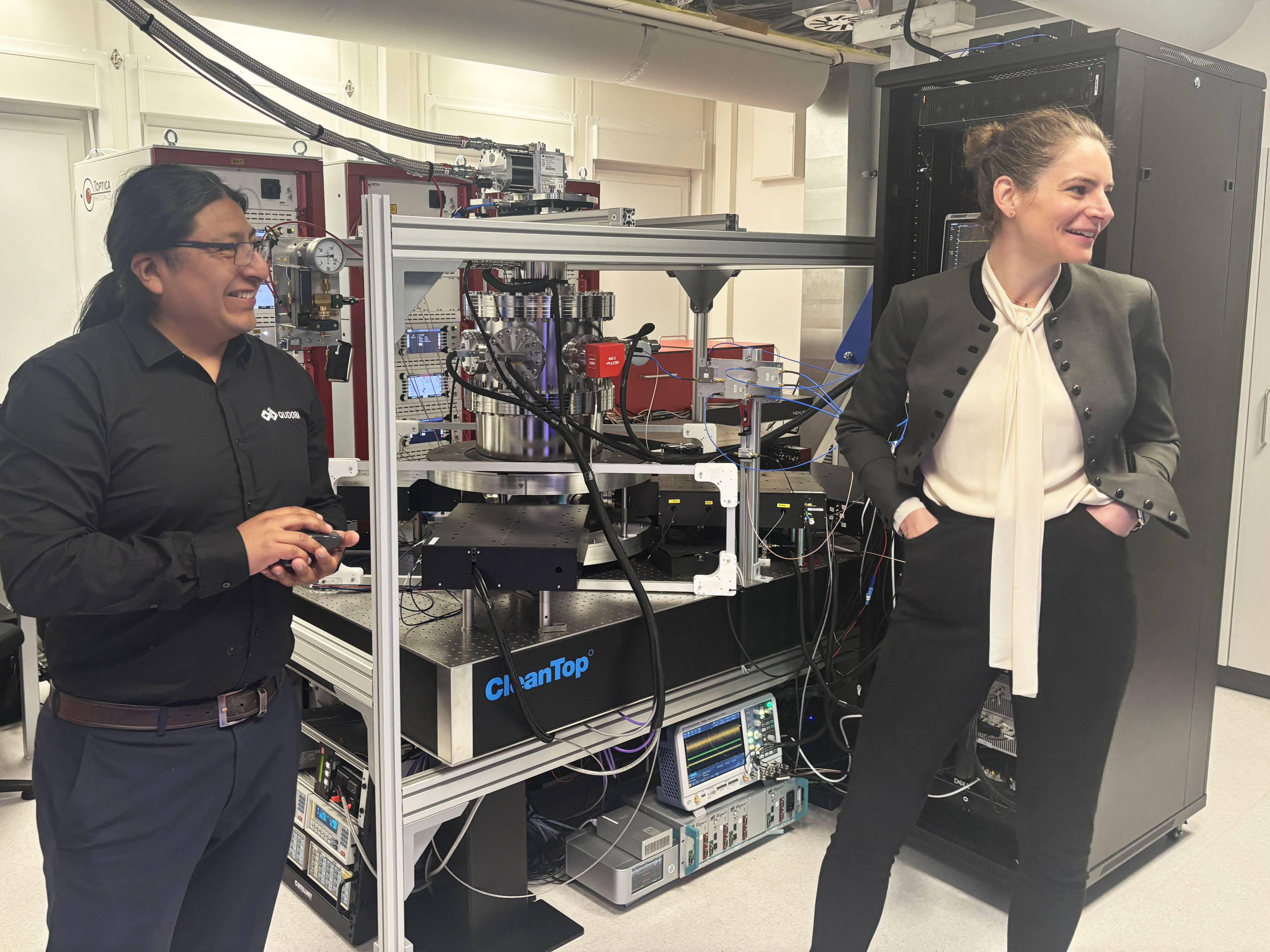 Ein Höhepunkt des World Quantum Day bei DESY: Die Besichtigung des Quantencomputers XAPHIRO durch Alexandra-Gwyn Paetz, Abtelungsleiterin Technologische Souveränität udn Innovation im BMFTR