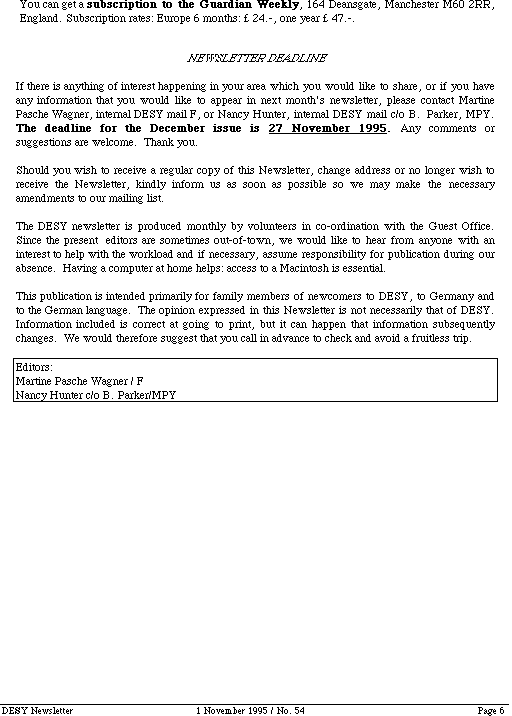 DESY NEWSLETTER, 1 November 1995 / No. 54